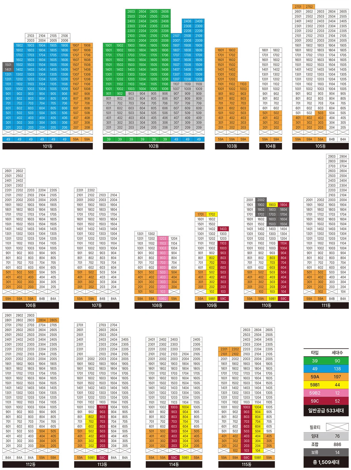 ( 지하 2층~ 지상 29층 15개 동, 총 1,509세대, 이 중 조합 886세대, 임대 76세대, 보류지 14세대를 제외한 일반분양 533세대 )