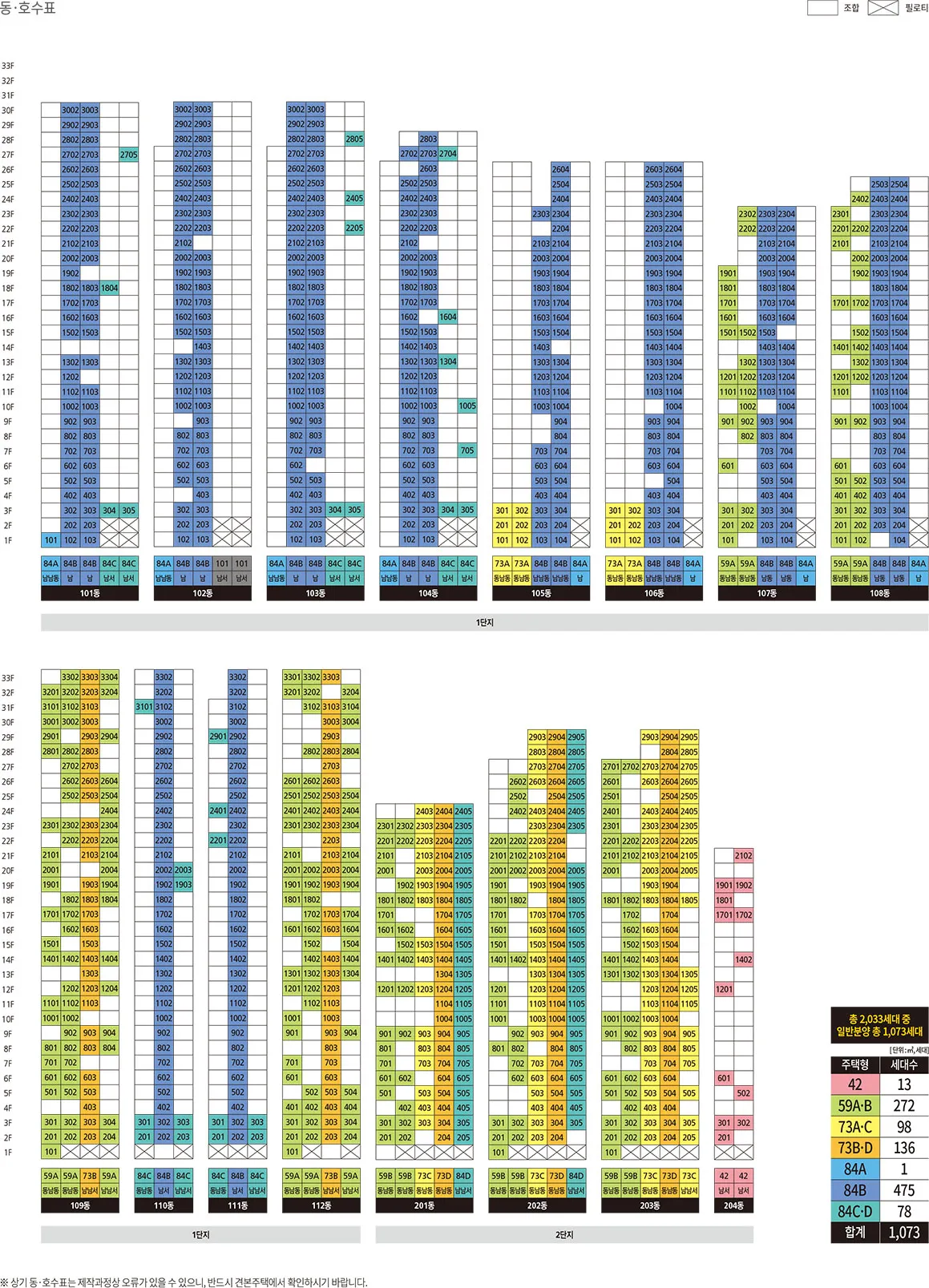 규모 : 지하 4층 ~ 지하 33층 16개 동, 총 2033세대(조합 856세대, 임대 96세대, 보류지 8세대 포함)로,