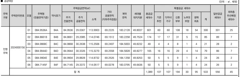 (특별공급 533세대 : 기관추천 107세대, 다자녀 107세대, 신혼부부 194세대, 노부모부양 30세대, 생애최초 95세대 포함)